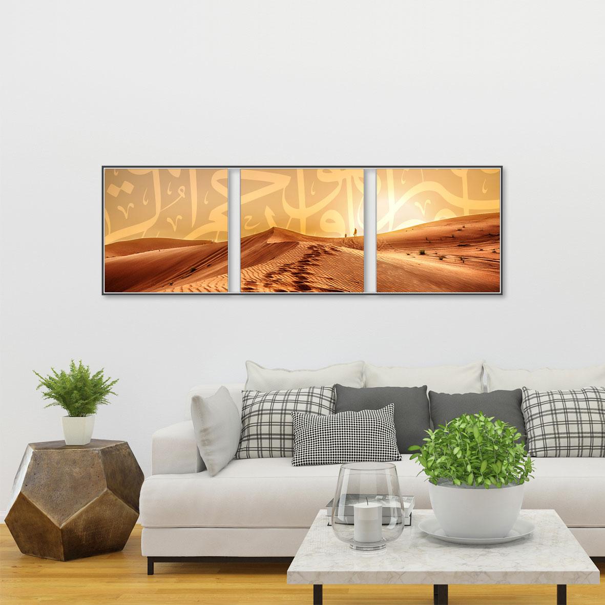 لوحة جدارية بتصميم مميز ، مطبوعة على أفخر خامات قماش الكانفاس ، مثبت على إطار خشبي مخفي . يجمعهم إطار واحد ، بمقاس 160×50 سم